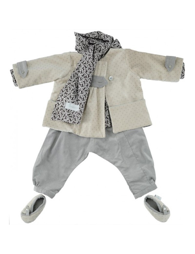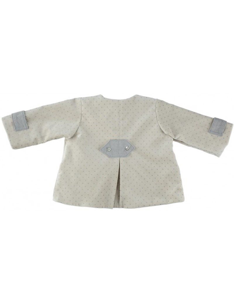 Un look parizian!Palton din catifea cu buline, cu accesorii din catifea, inchis in fata cu un buton elegant, intarit cu muselina de sifon si catifea; este prevazut cu doua buzunare.
